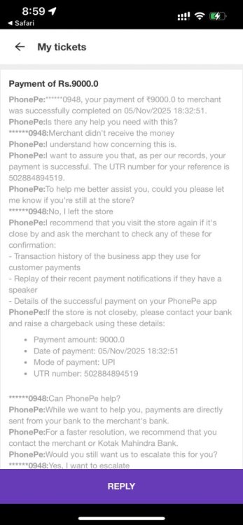 This is not the first time I’m facing this nonsense. On 8 September, I made another deposit of ₹1,000 that you never resolved — not even after two months of waiting and following up. That was frustrating enough, but now ₹9,000 missing? This is ridiculous and completely unacceptable. If this is how you handle user funds, then you’re putting your entire credibility at risk. I’m not going to sit quietly this time — either credit the ₹9,000 to my account immediately or refund it back to my payment source without further excuses. I have attached the PhonePe transaction proof showing the successful payment. I expect a proper resolution, not another generic response. Handle this seriously — this is the second time, and I will not let this go ignored. Bc game id 99007906