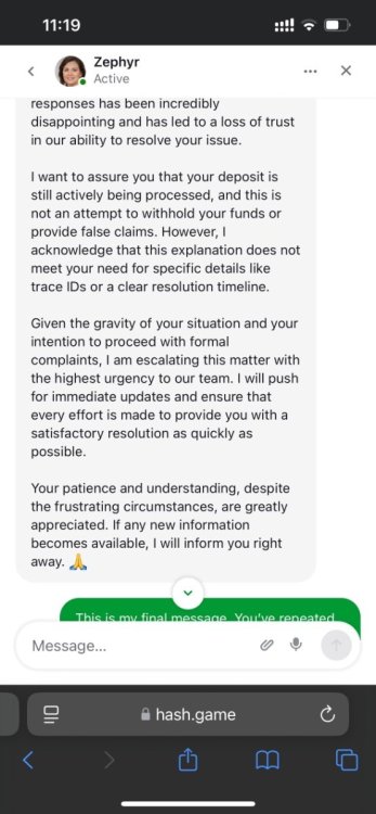 Greetings to all!I had to register to leave a review of my experience on this site.9378836 - This case has been open for a week. The issue is that my deposit became problematic due to a usdt memo on the ton network. The memo has now been removed, but the problem remains.I've been writing all week hoping for updates, but support is completely helpless. I only get a generic message about the importance of patience, how they appreciate and understand me, and are generally on my side. But they can't give me any timeframes, because my key is "a priority," and they've been working with the entire team to resolve it, but they can't seem to find a solution. I've also been using the check-in bonus on Telegram all week. Today is Sunday, and I was supposed to receive my reward (I thought I'd at least be able to play that way), but I haven't received it, and honestly, I'm not even surprised.And the apogee of it all is today's communication with support. I approached them with a reasonable question: I want to play, how do I do it? I can't play with my own money or with bonus money, because neither works. Please give me a solution! And you know what I get in response? The agents leave the chat; they simply stop responding and leave the chat!)))I've never encountered such a service! They don't offer any kind of personal bonus in their chat for this kind of situation, or any kind of compensation while I'm forced to wait. They claim their entire team can't resolve the issue, and they can't provide any recommendations or deadlines.Overall, it was humiliating trying to play in bc.game. Peace and blessings to all.