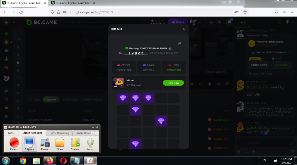 بازی کرش اول به قسمت کلاسیک میریم قسمت ادونست و گزینه Simple رو میزنیم بعد مقدار شرط رو یه مقدارد کمتر از نصف موجودی قرار میدیم به طور مثال اگر 100 ترون داریم شرط رو 40 ترون میزاریم ضریب هم میزاریم روی 2 قبل از اینکه دست بعدی شروع بشه اینو اوکی میکنیم و سریع میریم قسمت ترنبال ترنبال قرمز رو هم 40 تا روی اتوماتیک میزاریم و اوکی میکنیم به این ترتیب توی هر دست ما به اندازه 80 ترون وگر میزنیم با این توضیح که اگر اون دست سبز باشه نه میبریم نه میبازیم و موجودیمون کامل بر میگرده اما اگر هم قرمز بشه به اندازه چهار صدم از شرطی که گذاشتیم کم میشه که در مقابل وگری که میخوره خیلی ناچیزه بعد در جریان بازی همینطور که وگر میخوره میتونیم یه صفحه دیگه باز کنیم و آروم آروم تو یه بازی دیگه که توش مهارت داریمم اون مقدار ضرر جزیی رو هم جبران کنیم موفق باشید