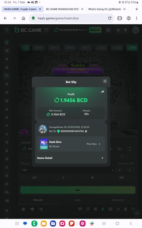 2. Easy 1. Instagram follow Id https://www.instagram.com/savage1writer/# 2. Twitter or X.com follow Id @WhatsGoingOn011 3. Win a payout of 20x on the original game. https://hash.game/game-detail/1825952008734537762 4. Get a 30x multi in the slot game https://hash.game/game-detail/1825953465141511714 5 Medium 5. Get a payout of 73.6x on the original game Risk-High, Row-10 https://hash.game/game-detail/1825954337084186145 6. BC original game Win 36x on the on number 0 https://hash.game/game-detail/1825943152130789410 7. BC original Win 50x in the. https://hash.game/game-detail/1825943860832915489 8. Win a 96.96x bet by selecting numbers 1, 14, 22, 28 (Risk: Medium https://hash.game/game-detail/1825945564570078754 9. Get 50x in the slot game https://hash.game/game-detail/1825952439030200353 Hard 10. Win on 48x or higher - Row 50, Segment High https://hash.game/game-detail/1825942540351355938 11. Win game 200x or higher multiplier https://hash.game/game-detail/1825954831090586657 12. BC Originals Slot score a win 100x or higher https://hash.game/game-detail/1825952999477367842 For Bounty https://x.com/WhatsGoingOn011/status/1906551439427584341