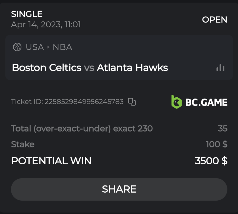 13. Bet ID/ Ticket ID : 2264125835667710210