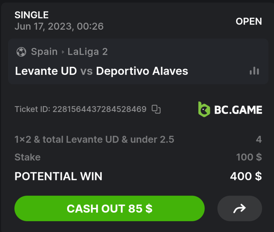 15. Ticket ID / Bet ID : 2258529849956245783