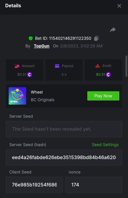 3. 9x, 15.5x https://bc.game/#/sd/11ELP47T3W61W3 https://bc.game/#/sd/11EITU79AAS3TZ